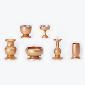 小さなお仏壇にピッタリなサイズです。秀明型 6点セット 詳細【サイズ】・花立3.0 高90×径59mm・茶湯器3.0 高48×径47mm・香炉3.0 高45×径75mm・仏器3.0 高47×径45mm・火立3.0...