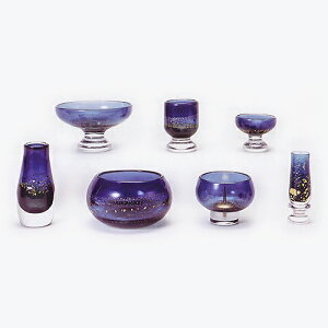 吸い込まれそうな美しい色ガラスに、金箔を施した綺麗な雰囲気が印象的です。※全て職人が手造りしておりますので寸法が異なる場合がございます。雲霞 7点セット 詳細【サイズ】・花立大 高110×径67mm・香炉大 高64×径113mm・火立大