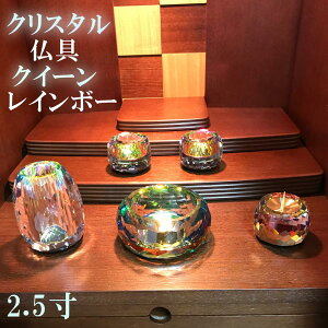 クリスタル仏具 クイーン レインボー 2.5寸 5具足 サイズ(高さ×横幅) 花立:7.5×5.0cm火立:3.5×4.0cm前香炉:4.0×8.0cm茶湯器:3.3×4.5cm仏飯器:3.5×4.2cm...