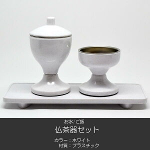 専用台付き仏茶器セット! 商品説明カラーホワイト 材質プラスチック仏器(ご飯入れ)皿/アルミ製茶器(お水入れ)皿/アルミ製 サイズ 水入:幅4.7cm×高さ9cmご飯入:幅5cm×高さ5cm専用台:縦6.9cm×横17cm セッ...