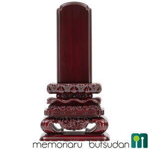 唐木の「紫檀」を使用した御位牌です。札板の上部は木瓜型で、台座は蓮華の受台や虫喰塗の装飾が施され下部に前垂れが付いています。 サイズは3.0寸、3.5寸、4.0寸、4.5寸、5.0寸、5.5寸、6.0寸からお選び頂けます...