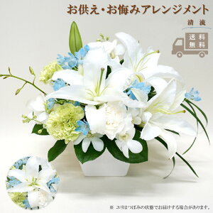 使用花材白ユリ デンファレ 白・緑カーネーション 水色スプレーデルフィ 他グリーン ※ユリは、つぼみの状態で お届けすることがあります。サイズ高さ 約30cm 横幅 約35cm 奥行 約25cm注意事項直射日光を避けて飾ってください。...