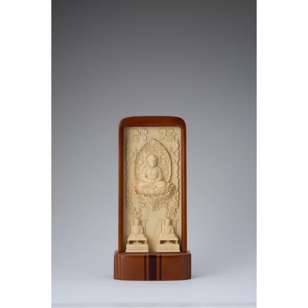 -s スタンドレリーフ スタンドレリーフは御本尊と脇仏が一緒に彫刻されており、家具調仏壇のご本尊としても人気の高い商品です。 また、お手入れをしやすいことでもご好評をいただいております...