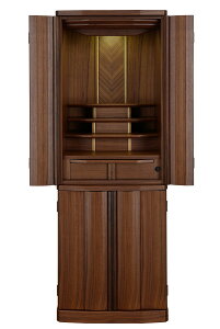 外寸法:高さ125cm×巾48cm×奥行38cm。内部寸法:上段から天井までの高さ29cm。上段中央奥行(欄干まで)13cm。下台収納寸法:高さ52cm×巾41cm×奥行33cm。材質:ウォールナット。正面表面材:笠・台輪:ウォールナ...