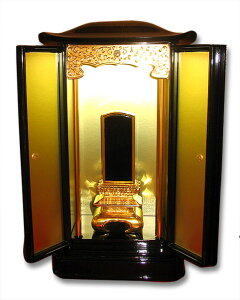 【厨子型ミニ仏壇 黒内金 大サイズ】 毎日身近な場所でご供養できる上置きタイプのミニ仏壇です。置く場所を選ばない小さなコンパクトサイズの仏壇なので、仏間がご用意できない方も大丈夫です。現代のライフスタイルに合わせたミニ