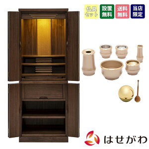 仏壇セット 小 紫檀色の解説 モダンな家具調の現代仏壇に、お祀りに必要な仏具をセットしました。 ●仏壇、リン4点(おりん、りん棒、りん布団、りん台)、ミニ仏具5点(花立、仏器、香炉、茶湯器、火立)のセットです...