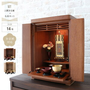 よく一緒に購入されている商品掛け軸+伸縮式台セット 三尊仏 仏壇用 浄土真3,850円〜商品仕様/規格 商品名 上置き小型仏壇14号+仏具6点セット(小) サイズ (cm) <上置き仏壇> 幅:33×奥行:24×高さ:43 [内寸]...