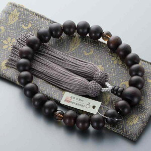 仏壇屋 滝田商店 数珠 男性用 縞黒檀 (艶消) 2天 茶水晶 22玉 正絹頭付房(ねず茶色) 【 数珠袋付き 】すべての宗派でお使いいただける 男性用 念珠 京都製 【滝田商店発行 京念珠製造師製作...