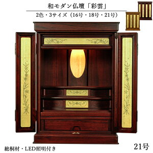 【キーワード】 モダン仏壇 コンパクト 小型 小さい おしゃれ 収納付き 引き出し付き 照明付き LED 桐 おすすめ ミニ 18号 完成品 ウォールナット 天然木 国産 日本製 爆買