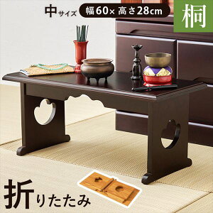 コンパクトに収納できる折り畳み式。日常使いの仏具を置いたり、軽くて持ち運びやすいのでお供え物を頂いた時などにサッ広げたりして使えます。 生産地 中国製 サイズ (約)幅60×奥行27×高さ28cm 素材 主材:桐材 補足説明 ■折りたたみ式