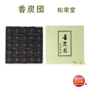品名 香炭団 燃焼時間 寸法 (1粒の大きさ)直径約20mm×高さ17mm 内容量(Net Weight) 25粒 総重量(Gross Weight) パッケージ 紙箱 110mm×110mm×23mm 製造元 松栄堂 SHOYE...