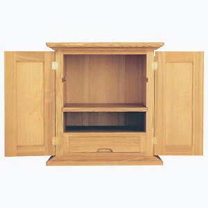 小型の上置型仏壇を載せる台です。 この品は高さを高めに作ってあります。通常の仏壇台は座って御参りしやすいよう、高さ30〜40センチに作りますが、設置場所によってはこのように高さ50〜60センチの高い台も使いやすいと思います...