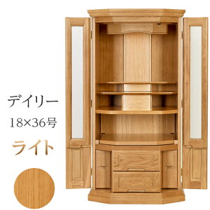 モダン仏壇【デイリー ライト / ダーク 18×36号】 商品説明 高級感あふれる国産楢材を採用した日本製仏壇 力強く美しい木目が印象的な国産の高級素材を使用したモダン仏壇。 明るいライトカラーと落ち...