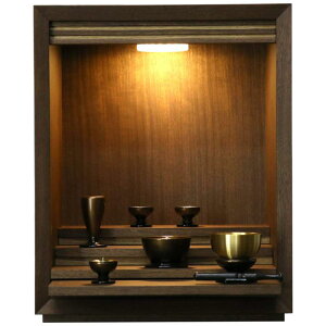 主材料 くるみ材 照明 夏目球 装備 膳引き付 商品説明 ガラスの扉でインテリア家具のようなコンパクト仏壇です。木肌が柔らかく洋間のタンスの上に置くことができます。お位牌を用意せず、宗教