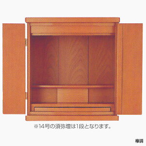須弥壇は1段となります。マック 詳細【サイズ】・14号 高420×巾380×奥行300×須弥壇上243mm【主要表面材】・欅調・メープル(楓)調・ウォールナット調【支輪・台輪】・調プリント【戸板】・調プリント【主要芯材】...