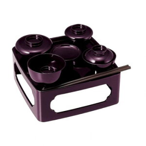 お箸が転がらないように溝をつけました。化粧箱の底に並べ方が印刷されています。サイズ240×270×160mm個装サイズ:25×24.5×10.5cm重量690g個装重量:690g素材・材質膳:ABS、表面加工/ウレタン椀:ABS、表面...