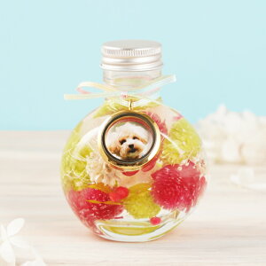 大好きだったペットのお供え花に… 手のひらサイズの可愛いドームの中に、ローズと、可愛いカスミソウを使用した、心安らぐアレンジになっています。 テレビや雑誌でも取り上げられている 今、話題の枯れないお花「プリザーブドフラワ
