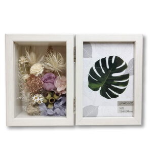 商品情報使用花材主にプリザーブドフラワー・ドライフラワーを使用。ピンポンマム(プリザ)・菊(プリザ)、アジサイ(プリザ)など小花などは仕入れ状況により店長おまかせサイズW160×H190×D60mm※ボックスは木製注意点ブリザードフラ