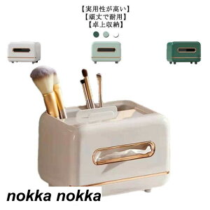 「ティッシュ収納と机の整理整頓の両立」ティッシュかつリモコン、文房具などを収納できる多機能ケースです。この商品一つでティッシュとリモコン類の収納ケースとなり、机の整理整頓に一役買うアイテムとなります。「卓上収納の決定