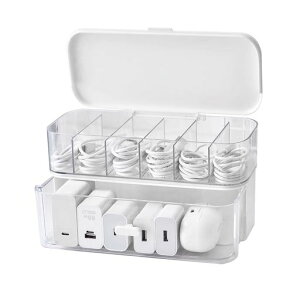 散りやすいケーブルをキレイに収納できるフタ付きボックス仕切りデザイン、たっぷりの大容量で一つずつ入れてスッキリ整理整頓できます。高品質、厚みのあるPP素材を採用して、長くご愛用いただけます。フタ付きでホコリや汚れからケ