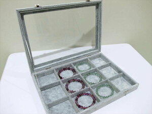 横35cm 縦24cm 厚さ5.0cm、12枠しきり(大)。 名称など - 商品説明 【天然石ブレスを守るトレイ、12枠しきり(大)】大切な天然石ブレスレットをホコリから守り美しく保管して、透明アクリルの蓋なので美しく見せる為の販売用ト