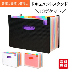 レインボー A4 ヨコ型 13ポケット ファイル ケース ファイルスタンド 書類 収納 領収書 伝票 整理 自立 仕切り アコーディオン式 デスク 引き出し 書類整理 クリアファイルが入る 学校 プリン