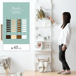 壁際のほんの少しのスペースを利用して、置く収納・掛ける収納・ディスプレイ収納、3つの収納方法でお部屋を雰囲気ある空間にする壁面ラックRuth(ルース)。 突っ張り式を採用することで、穴をあける必要がなく、壁を傷つけたくない方