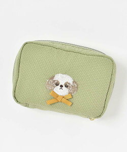 リーズ。 華やかなビーズ刺繍は全て職人の手作業により作られています。 光沢のあるポリエステル生地に犬のモチーフが刺繍されたポーチです。 フェイスラインにはビ