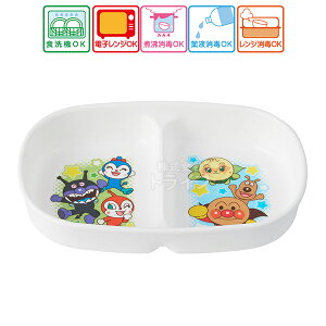 ●仕切りがあるためご飯が混ざらず、便利なお皿●アンパンマンのキャラクターが描かれており、子どもが楽しくお食事できる●裏面にはソフト素材を使用しており、テーブルの上で動きにくく音もおさえる●電子レンジ、食洗機...