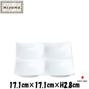 四つ仕切り ミニプレート 12cm 日本製 美濃焼 瑞浪焼 陶器 陶磁器 食器 洋食器 白い食器 深山 miyama 小分け 小皿 角皿 仕切り皿 前菜皿 デザート皿 四角 小さめ 高級白磁 ホワイト 真っ白