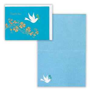 気持ちが伝わるかわいいグリーティングカード多目的/お礼/プレゼント/ギフト/贈り物こちらは感謝の気持ちを伝えるのにピッタリな[グリーティングカード]幸運のクローバーを白い鳥が運んでくるデザイン表紙のクローバーにはホログラム箔