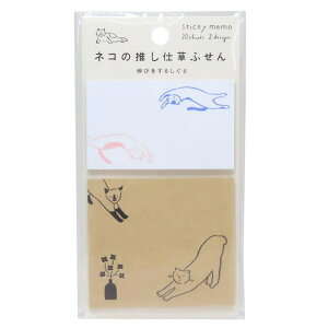 2種の異なる素材のふせんがセットに!メッセージ/伝言/オフィス/猫グッズ/可愛い 付箋毎日がたのしくなるキュートなステーショナリーシリーズこちらはかわいい[ネコの推し仕草ふせん]上質紙ふせん20枚、クラフト紙ふせん20枚がセットにな
