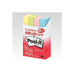 【商品名】 3M ポスト・イット 業務用パックノート 再生紙 75×75mm 混色4色 6544-K 1パック(40冊) 【ジャンル・特徴】 毎日使うモノこそ再生紙でエコ。 [ 6544-K ]