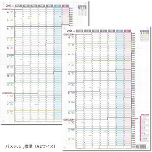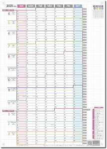 2025年 令和7年、4月始まり 月曜始まりの、1年連結カレンダー。A1特大サイズと、A2標準サイズの2枚セット。