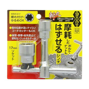 高儀の一覧はこちらエンジン刈払機の刈刃取付ボルト・ナットなどに13mm(M8)・17mm(M10)の2サイズに摩耗して角が丸くなってしまったボルト・ナットもしっかり回せる特殊形状取付位置が深いナイロンコードカッターでもOK使用状況に合...