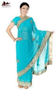 ■【一点物】ミラーワークと刺繍の婚礼用ゴージャス ジョーゼットサリー【チョリ付き】 - ターコイズブルーの詳細 ブランドTIRAKITA(ティラキタ)大きさ 長さ:500-550cmcm程度(平均的な長さなので、若干誤差があります。ま...