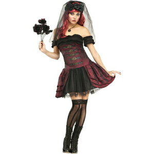 【商品説明】ダークでスチームパンクな花嫁のコスチューム。ベアトップドレス、ベール、アームパフのセットです【セット内容】・ドレス×1・ベール×1・アームパフ×1組※花の髪飾り、ストッキング、靴、ブーケは付属しません※上記以外