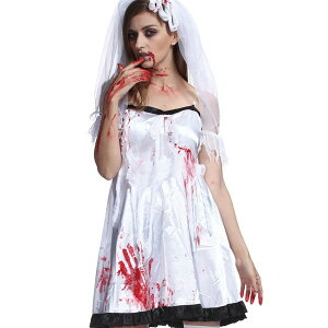 嬉しい血のり付き♪自由にペイントしてね! 血まみれ恐怖の結婚式! 花婿タイプの男性用(スプラッターグルーム)もあるので、ペアで楽しもう! ◆詳細◆ 内容:ヴェール付きカチューシャ・ワンピース・血のり ※ソックスは付属していま