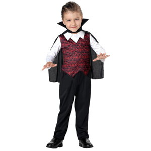 【商品説明】ハロウィン仮装の定番!子供用のドラキュラコスチューム。大きな襟が特徴的☆シャツとメダルも付いています。別売りの血のりやキバを一緒に使うと更に本格的【セット内容】・シャツ×1・ケープ×1・メダル×1※上記以外は付