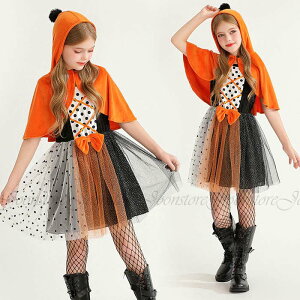 かぼちゃ ハロウィン衣装 子供服 魔女 巫女 女の子 コスチューム 魔法使い 仮装 コスプレ衣装 ワンピース 帽子付き 仮装 キッズ 宴会 余興 忘年会 学園祭 文化祭 舞台