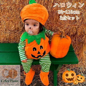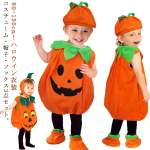 【ハロウィン仮装3点セット】【80〜150cm】ハロウィン かぼちゃのジャックオーランタンカバー、帽子、ソックスの豪華3点セットベビーもハロウィン衣装で仮装を楽しいちょっとしたお出かけ着にも記念日写真にもおすすめです...