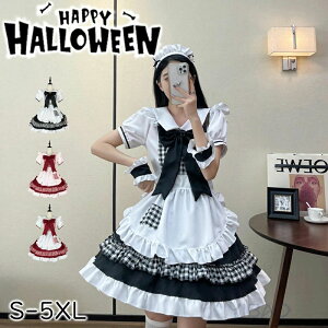コスプレ ハロウィン コスチューム ロリータ メイド メイド服 仮装 衣装 レディース ワンピース ミドル丈 ワンピ ロングワンピ 膝下丈 大きいサイズ ハロウィンコスプレ コスプレ衣装 セット カチューシャ...