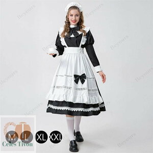 【商品名】 メイド服 ロング コスプレ メイド 衣装 ハロウィン コスチューム 可愛い 半袖 大きいサイズ クラシカル メイド 仮装 コスプレ衣装 3L 2L 2XL XL M L 【セッ...