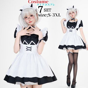 【送料無料】S-5XLのサイズから展開、さまざまな体型にフィットします。7点セットのデザインで、簡単にコーディネートできます。着るだけで可愛いメイドに変身できます!