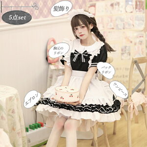 さまざまな体型にフィットします。5点セットのデザインで、簡単にコーディネートできます。着るだけでハロウィンの可愛いメイドに変身できます!。。?。