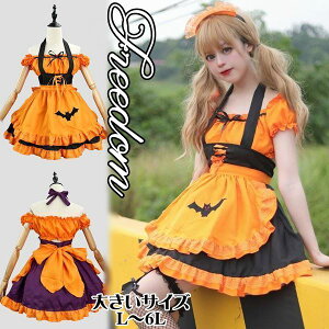 コスプレファッション■■ 大きいサイズの揃ったメイドコスチューム! ★ハロウィンスタイル!ハロウィンカラーのセットアップメイド服コスチュームです♪ ★お店、イベント、パーティー、ハロウィン、クリスマスなどで盛り上がる