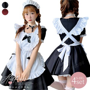 【送料無料】2カラー、S-5XLのサイズから展開、さまざまな体型にフィットします。4点セットのデザインで、簡単にコーディネートできます。着るだけで可愛いメイドに変身できます!