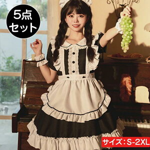 商品説明 商品名 メイド服 5点セット コスプレ 可愛い 女の子 レディース 半袖 ロリータ ワンピース 黒 ハロウィン 大きいサイズ 定番 S-2XL 男性ウケ バレンタイン かわいい コスチューム...