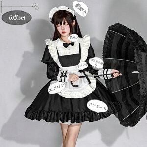 商品説明 商品名 メイド服 6点セット コスプレ 可愛い 女の子 レディース 半袖 ロリータ ワンピース 黒 ハロウィン 大きいサイズ 定番 S-2XL 男性ウケ バレンタイン かわいい コスチューム...