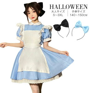 ハロウィンメイド 大きいサイズ メイド服 ハロウィン コスプレ レディース 仮装 子供 ワンピース ヘアバンド リボン